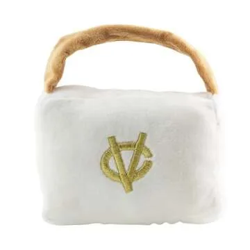 Haute Diggity Dog Chewy Vuiton White Purse, Plush Designer Dog Toys with Interactive Squeaker, Stimulating Pet Enrichment, Machine-Washable & Safe Materials for All Breeds, Size Medium