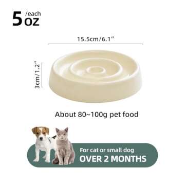 Havniva Ceramic Slow Cat Feeder Bowl for Cat, Slow Cat Food Bowl, Pet Slowe Feeder Bowl, Circle Shape. (Bowl x 2 - Cream, 6inch)
