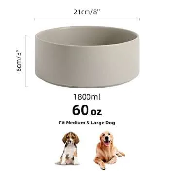 Havniva Non-Slip Ceramics Dog Food Bowl Dog Water Bowl Dog Dish for Large Dog Protect Cervical Spine (8in Single Bowl, Grey)