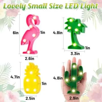 Hawaiian Party Lights - 4 Pack Mini LED Flamingo Cactus-Shaped Pineapple Palm Tree Sign Lamps Tropical Themed Party Decorations Supplies, Desk Table Wall Night Lights Indoor Decor for Kids' Room