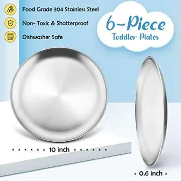 HaWare 6-Piece 18/8 Kids Plates, Stainless Steel 304 Dinner Dishes for Toddlers Children, 10 Inches Feeding Serving Camping Metal Plates, Reusable Dinnerware, Shatterproof & Non-toxic, Dishwasher Safe