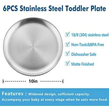 HaWare 6-Piece 18/8 Stainless Steel Plates, Metal 304 Dinner Dishes for Kids Toddlers Children, 10 Inches Feeding Serving Camping Plates, Reusable and Dishwasher Safe