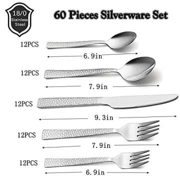 HaWare Hammered Silverware Set, 60-Piece Stainless Steel Flatware for 12, Modern Eating Utensils Tableware Cutlery for Kitchen Hotel Restaurant Party, Mirror Polished - Dishwasher Safe