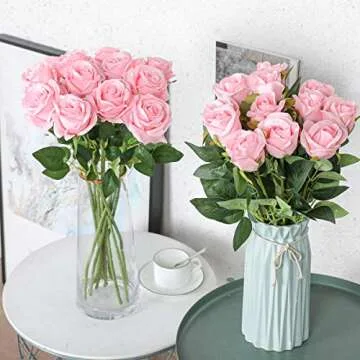 Hawesome 12PCS Artificial Silk Flowers Realistic Roses Bouquet Long Stem for Home Wedding Decoration Party (Pink -1) 1