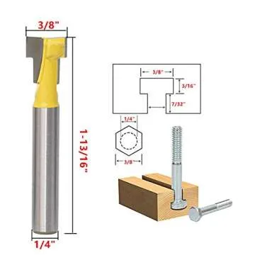 HAWKASH Keyhole Router Bit Set 2 Pieces 14 inch Shank, 38 and 12 inch Blade Diameter T-Slot Router Bit, High-Grade Carbide Tipped Keyhole Slot Cutter Bit, Yellow