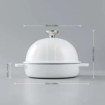 HAWOK Cast Iron Bread Cloche, Dia. 6.3inch/16cm, Sourdough Baking Pan Enameled White