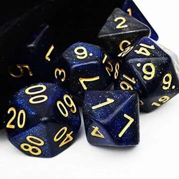 Haxtec Glitter DND Dice Set 7PCS Polyhedral D&D Nebula Dice for Roleplaying Dice Games as Dungeons and Dragons (Blue Black Nebula)