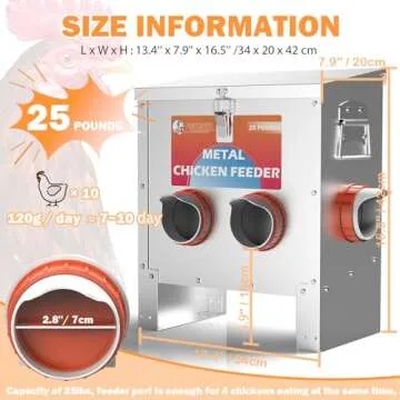 - LARGE CAPACITY: Holds 25 pounds of feed, catering to 4 chickens at once.
