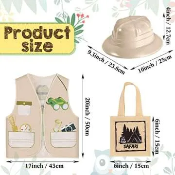 Show moreEmbark on a journey of adventure and excitement with the Haysandy 36 Pcs Explorer Costume Set. This delightful set includes everything your little explorers need to engage their imaginations and immerse themselves in the world of exploration. Featuring light khaki waistcoats, practical beige hats, and charming light khaki tote bags, this costume set not only looks cute but is also designed for ultimate fun. Whether they are pretending to be intrepid adventurers in the backyard or participating in a themed birthday party, this costume set provides unforgettable moments filled with joy and creativity.