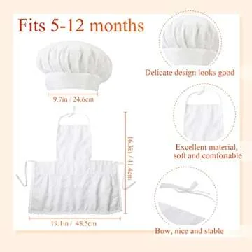 This baby chef outfit is ideal for infants aged 5 to 12 months.
