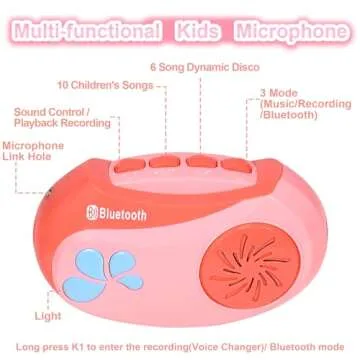 HAYXUN Kids Karaoke Machine for Girls with Adjustable Stand, Bluetooth Karaoke Microphone with Vioce Changer, Singing Recorder - Microphones for Singing Birthday for Girls Boys-Pink, MTK027A-2B/G
