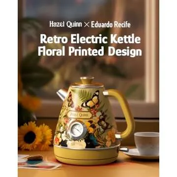 Show more The Hazel Quinn X Eduardo Recife Collaboration Electric Retro Tea Kettle is not just an ordinary appliance; it is a delightful fusion of art and functionality. Crafted meticulously from food-grade 304 stainless steel, this kettle ensures that no plastic comes into contact with your water, making it a BPA-free choice for your family’s health. With a generous 1.7-liter capacity, the kettle can easily prepare up to 8 cups of your favorite beverages in just 4-5 minutes at a powerful 1200 watts. The unique thermometer dial allows you to achieve the perfect temperature for whatever you are brewing, creating a delightful experience for tea and coffee lovers alike.