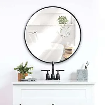 Show more Transform your living space with our stunningly crafted rustic black mirror, designed to elevate the aesthetics of any room. This exquisite 24-inch mirror, adorned with a classy thin black circle frame, is perfect for a bathroom, entryway, or hallway. The matte black finish adds a touch of elegance, ensuring it complements any décor style, from modern to traditional.