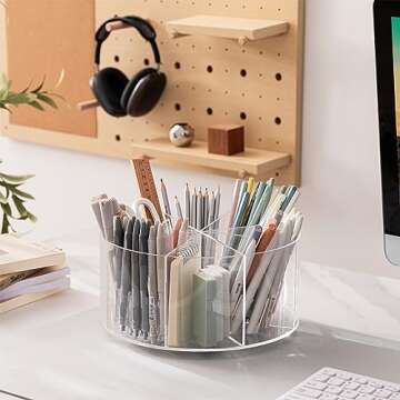 Introducing the HBlife Acrylic Pencil Pen Holder—the perfect solution for those seeking a clutter-free workspace! With its innovative 360° rotation design, you can effortlessly access your pens and office supplies, keeping your creative flow uninterrupted. Whether you're at home, in the office, or studying at school, this stylish and functional desk organizer transforms any workspace into an optimized hub of productivity.