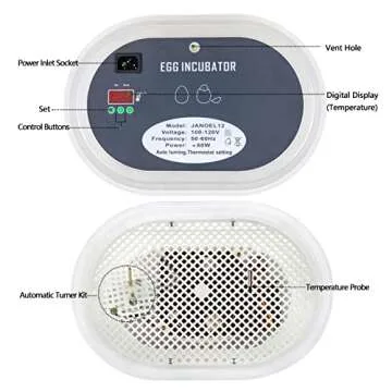 HBlife Digital Egg Incubator for Hatching 9-12 Chicken, Quail and Duck Eggs, with Fully Automatic Egg Turning and Temperature Display, Hatcher for Turkeys, Birds, Parrots and Poultry