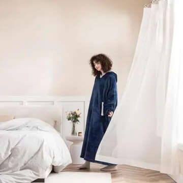 HBlife Long Oversized Wearable Blanket Hoodie for Adults, Thick Sherpa Fleece Sweatshirt with Elastic Sleeves & Giant Pockets, Cozy Plush Fleece Jacket, Blue