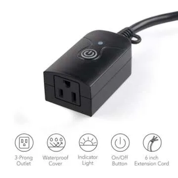 HBN Outdoor Indoor Wireless Remote Control 3-Prong Outlet Weatherproof Heavy Duty 15 A Compact 1 Remote 1 Outlet with Remote 6-inch Cord 100ft Range ETL Listed (Battery Included)
