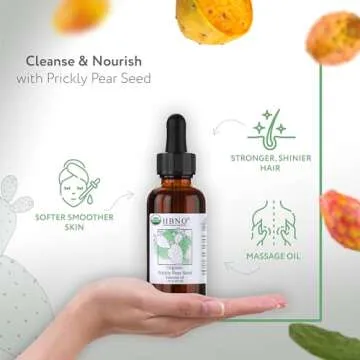 Why You Will Love This Product: You won't just appreciate the immediate benefits of HBNO Organic Prickly Pear Seed Oil, but it will also become an integral part of your self-care rituals. Feel the luxurious texture glide across your skin as it hydrates and revitalizes tired areas, while the light nutty aroma uplifts your spirit — transforming your beauty routine into a sensorial experience. Trust in our product and indulge in the moment, knowing you are choosing a recognized favorite that prioritizes both your beauty and the well-being of the planet.