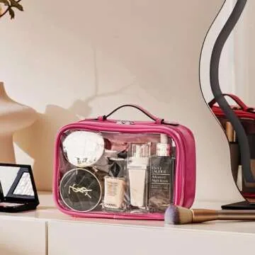 HBselect TSA Approved Toiletry Bag, Clear Makeup Bag Travel Toiletry Bag for Women Girls, Portable Waterproof Makeup Bag Organizer Cosmetic Bag Travel Accessories Essentials (Small Rose Red)