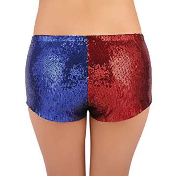 HDE Women's Red and Blue Metallic Sequin Booty Shorts for Harley Misfit Halloween Costume (Red and Blue, Large)
