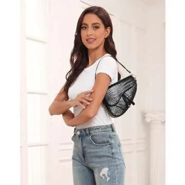 Show moreIntroducing the HDE Women's Saddle Shoulder Bag, a chic and versatile accessory designed for the modern woman. This stunning saddle bag is crafted from durable crocodile textured patent leather and features a stylish magnetic button closure that is both functional and fashionable. Measuring 8.8 inches long, 2.2 inches wide, and 6.8 inches high, this compact bag is perfect for holding your essentials without sacrificing style. The interior is lined with dark fabric, ensuring your belongings stay secure while adding an air of elegance. The bag also includes two detachable straps—one short handle measuring 15 inches and a long strap that can extend from 29 to 45 inches—allowing you to carry it in different ways to suit any outfit, whether as a shoulder bag, crossbody, or even a clutch.