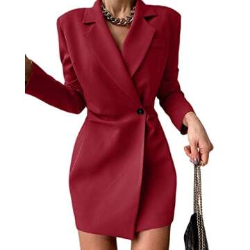 Hdieso Women's Elegant Blazers Dress Long Sleeve Button Work Office Events Blazer Outfits Wine