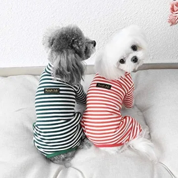 The pajamas boast a pull-on design with excellent elasticity, making them easy to put on and take off. The classic striped pattern comes in vibrant colors – red and dark green in this 2-pack – allowing you to dress your pet in fashionable sleepwear while providing practical benefits for various conditions.