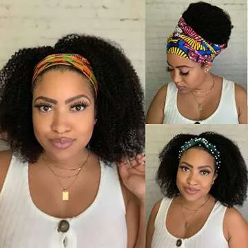 Headband Wig Kinky Curly None Lace Front Wigs Brizilian Virgin Hair Machine Made Human Hair Curly Wigs for Black Women 150% Density Natural Color 18 inch
