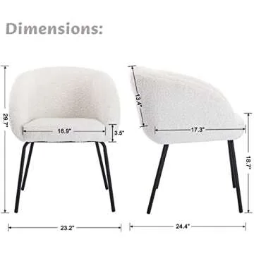 HEAH-YO Upholstered Faux Fur Dining Chairs Set of 2, Barrel Back Leisure Dining Side Chair Comfy Vanity Chair with Metal Legs Armchair for Kitchen Dining Room Living Room Bedroom, White