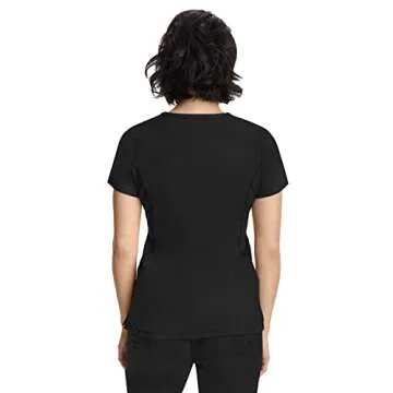 Healing Hands Women's Scrub Top V-Neck with 2 Pockets, 2-Way Stretch, and Yoga Knit Side Panels for Slim Fit 2245, M, Black