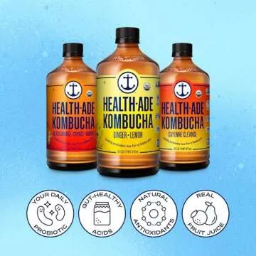Show more Discover the refreshing world of Health-Ade Kombucha, a daily delight designed to enhance your gut health and overall wellbeing. This kombucha is not just a drink; it's a delicious beverage crafted with care, bringing you the combined powers of probiotics, real fruit juice, and natural antioxidants. Each sip delivers a burst of flavor accompanied by the assurance of being free from artificial sweeteners, flavors, or colors. From the moment the first bottle arrives at your doorstep, you will realize you’re cultivating a diverse microbiome, helping to ensure your body's balance.