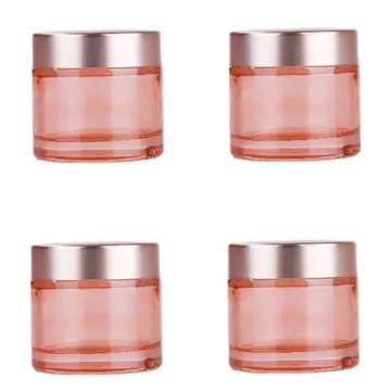 Healthcom 4 Packs 2 Oz Pink Glass Cosmetic Jars with Rose Gold Lids for Creams and Balms