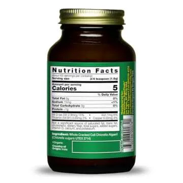 Show moreDiscover the extraordinary benefits of HealthForce SuperFoods Chlorella Manna, a premium-grade chlorella powder that supports cellular repair, boosts immune function, and enhances gastrointestinal health. Chlorella Manna is derived from the only plant on the planet capable of quadrupling its growth in less than a day. This remarkable living algae is packed with nutrients, making it a powerhouse supplement for anyone looking to improve their overall well-being. Our chlorella powder is carefully crafted to be certified organic, vegan, kosher, and gluten-free, ensuring that you receive a product that not only benefits your health but is also aligned with your dietary choices.
