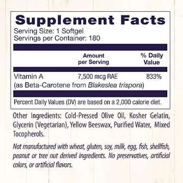 Our formula stands out, not only for its effectiveness but also for its commitment to clean and natural nutrition. With non-GMO ingredients and a clean label free from unnecessary additives and synthetic components, you can trust that you are giving your body the nutrients it deserves. Each bottle contains 180 soft gels, offering a reliable source of beta-carotene that fits seamlessly into your daily routine.