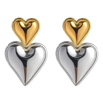 Show moreIntroducing the **Heart Drop Earrings**, a stunning piece from our exclusive jewelry collection designed to resonate with elegance and playfulness. These exquisite dangle earrings showcase a delightful heart design, meticulously crafted to add a touch of charm and sophistication to any outfit. Whether you’re dressing casually for the day or gearing up for a special evening, these earrings are your perfect accessory. Designed with a breathtaking blend of gold and silver hues, they catch the light beautifully, reflecting a lustrous shine that enhances your natural beauty.