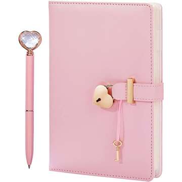 Heart Shaped Lock Diary with Key & Heart Diamond Pen Set