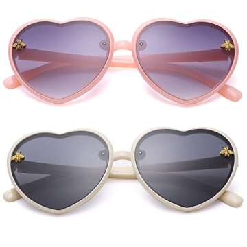 Heart Shaped Sunglasses for Kids | Stylish Cute Bee Frame for Toddlers