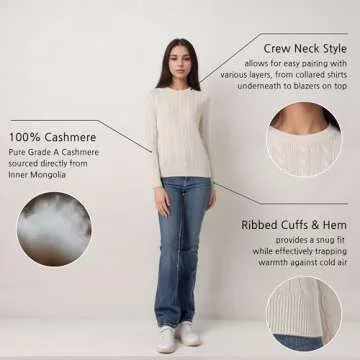 Show moreIndulge in the luxurious warmth and exquisite softness of the Hearth Cashmere 100% Pure Cashmere Ladies' Cable Crew Neck Sweater. Crafted from 100% pure Grade A inner Mongolian cashmere, this sweater is designed for those who appreciate high-quality materials and fantastic craftsmanship. The softness envelops you like a gentle hug, providing comfort on chilly days while keeping your style impeccable. With its timeless cable knit design and classic crew neckline, this sweater strikes the perfect balance between casual elegance and sophisticated comfort.