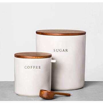 Show moreTransform your kitchen into a haven of style and organization with the Hearth & Hand with Magnolia Kitchen Canister Collection. This thoughtfully curated bundle includes two stunning canisters labeled for Coffee and Sugar. Designed with both functionality and aesthetic appeal in mind, these canisters feature a beautiful ceramic construction that harmonizes with a variety of kitchen decors. The elegant earthy tones and minimalist design add a touch of sophistication to your countertop while ensuring that your essentials are easily accessible. With their airtight seals, you’ll be able to keep your coffee fresh and your sugar perfectly granulated, embodying the essence of simple pleasures in your daily routine.