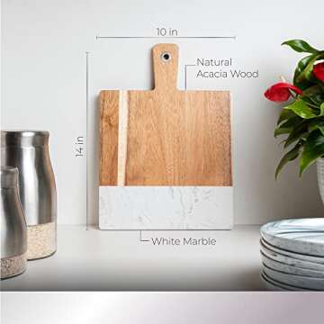 Hearthford White Marble Serving Board - Marble Cheese Board | Acacia Wooden serving Tray for Charcuterie, Cheese, Meats, Fruit, Crackers| Marble cutting board, marble tray, white marble slab rectangle