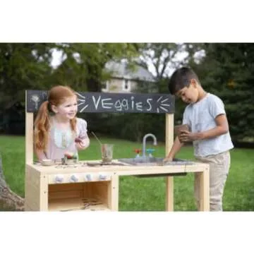 Unlike many other play kitchens that are primarily made of plastic or flimsy materials, the HearthSong Wooden Mud Kitchen stands out due to its high-quality cypress wood construction, ensuring durability and sustainability. Many competitors lack the sensory features that invite tactile interactions, such as the functional sink and moving knobs. HearthSong's attention to detail, including the educational and imaginative components, offers a holistic play environment that promotes much more than just cooking activities, making it a preferred choice for parents and educators alike.