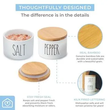Heartland Home Ceramic Salt and Pepper Bowls - Stackable Salt Container Set with Lids