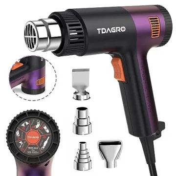 Show moreThe TDAGRO Heat Gun for crafting is the ultimate tool for every DIY enthusiast and professional alike, combining power, efficiency, and versatility in a compact design. With a robust 1800W strong power, this heat gun is engineered to perform under pressure, heating up in just 1.5 seconds. Its exceptional temperature range peaks at an astounding 1202℉, making it ideal for a multitude of applications, from heat shrinking tubing and removing paint to delicate crafting and even car wrapping.