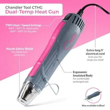 At Chandler Tool, we pride ourselves on our global brand legacy, starting from a small LA loft to your creative ventures. Our commitment to quality is reflected in our UL-certified products, ensuring reliability and performance you can trust. When you choose our heat gun for your next crafting adventure, you’re choosing to unlock your creative potential and elevate your projects!