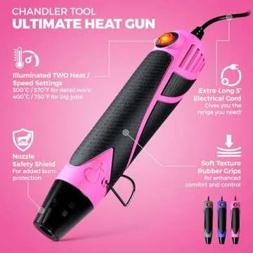 Heat Gun for Crafting, Mini Dual Temp Hot Air Gun Tool for Epoxy Resin, Shrink Wrapping, Vinyl Wrap, Embossing, Electronics, Candle Making, Sublimation, Phone Repair & DIY (Pink/Black)