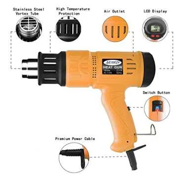Show moreIntroducing the Mowis 1800W Hot Air Gun, an exceptional tool designed for both professionals and DIY enthusiasts. With an impressive temperature range from 212°F to 1112°F, this heat gun can tackle a variety of tasks including shrinking PVC, stripping paint, and even delicate solder seal wiring connectors. Its digital LCD display offers precise temperature control, arming you with a powerful yet easy-to-use tool that perfectly balances performance and comfort. Whether you're a contractor or a passionate handyman, this heat gun is a reliable addition to your toolkit that promises to meet your diverse needs.