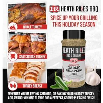Show moreIntroducing the Heath Riles BBQ Rub - Garlic Jalapeño BBQ Seasoning, a culinary creation from world-renowned Pitmaster Heath Riles, who boasts over 70 grand championships in BBQ competitions. This extraordinary 12 oz. seasoning is more than just a rub; it is a blend of flavors developed through years of practice and perfected by a champion. Infused with the right balance of garlic and a mild jalapeño kick, this versatile seasoning elevates your meals, making it the go-to blend for any aspiring chef or seasoned pitmaster. Imagine the joy of watching your friends and family savor the mouth-watering flavors of your BBQ, with each bite reminiscent of championship-winning recipes that have gained millions of views on YouTube.