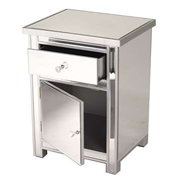 Whether you are completing a newly designed décor scheme or looking to enhance an existing one, this accent cabinet perfectly fits the bill. Many users have praised its ability to transform ordinary spaces into extraordinary ones, celebrating its glamorous influence as it catches attention in any room. Say farewell to uninspiring furniture and say hello to chic living with our Mirrored Nightstand—a must-have for any fashionable home enthusiast.