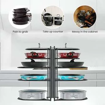Heavy Duty Pan Organizer for Cast Iron Pot Rack Storage for Cabinet 5 Tier Skillet Holder for Kitchen-Holds 5qt/7qt Dutch Oven,8”10”12” Skillet-Matte Black
