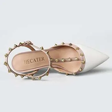 Show moreIntroducing the HECATER Kitten Heels Strappy Sandals - the perfect blend of comfort and style for the modern woman. These chic sandals are designed with a 2.75-inch middle heel that provides an ideal height for effortless walking, allowing you to wear them all day without compromising on comfort. The pointed toe and metal studs strap design add a touch of elegance and playfulness, making these sandals a fashion-forward choice that pairs beautifully with a variety of outfits, whether you're dressing up for a special occasion or heading out for a casual gathering.